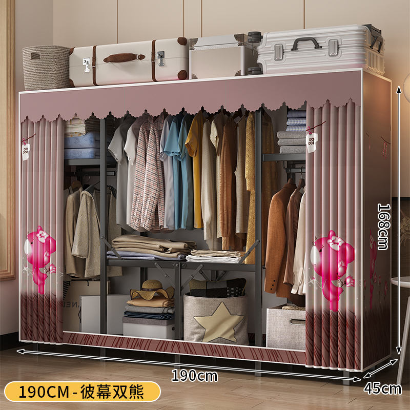 Armoire pliable simple maison chambre petit appartement cadre en acier armoires durables pour la location facile à assembler placard de rangement