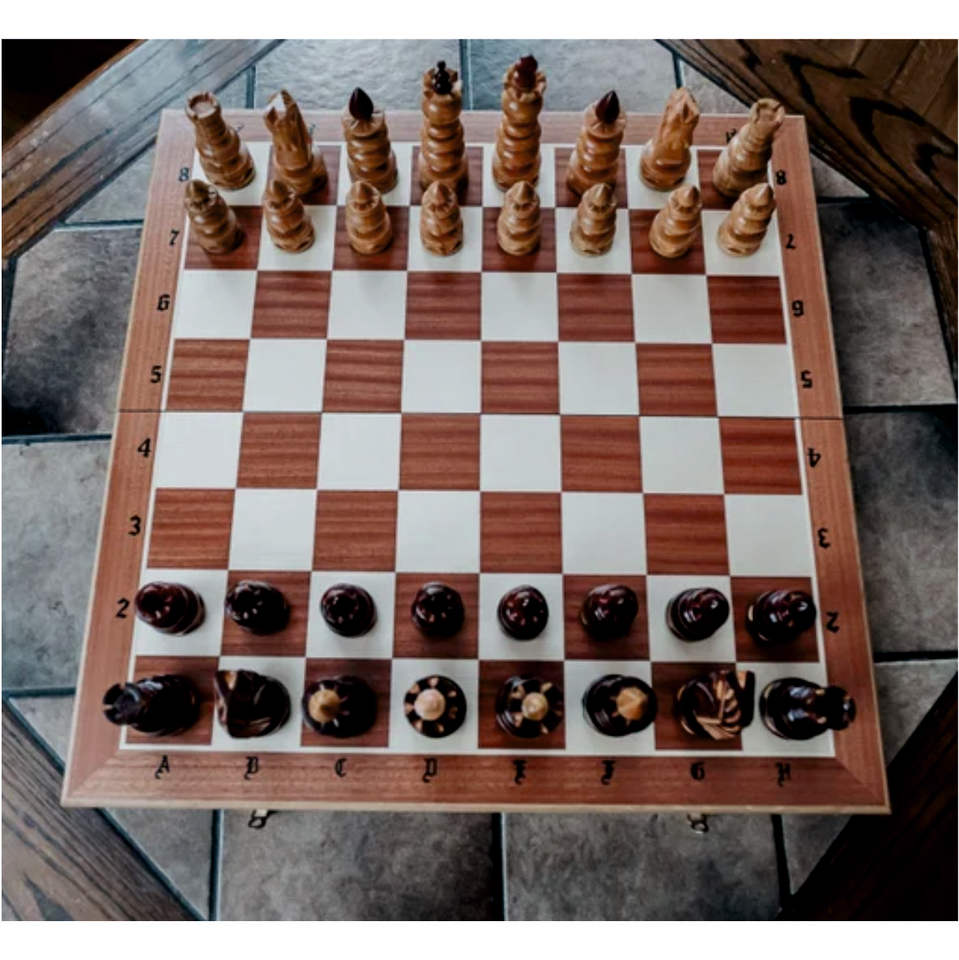 Échiquier carré pliable en bois avec tiroir de rangement pour pièces d'échecs, design artisanal de luxe