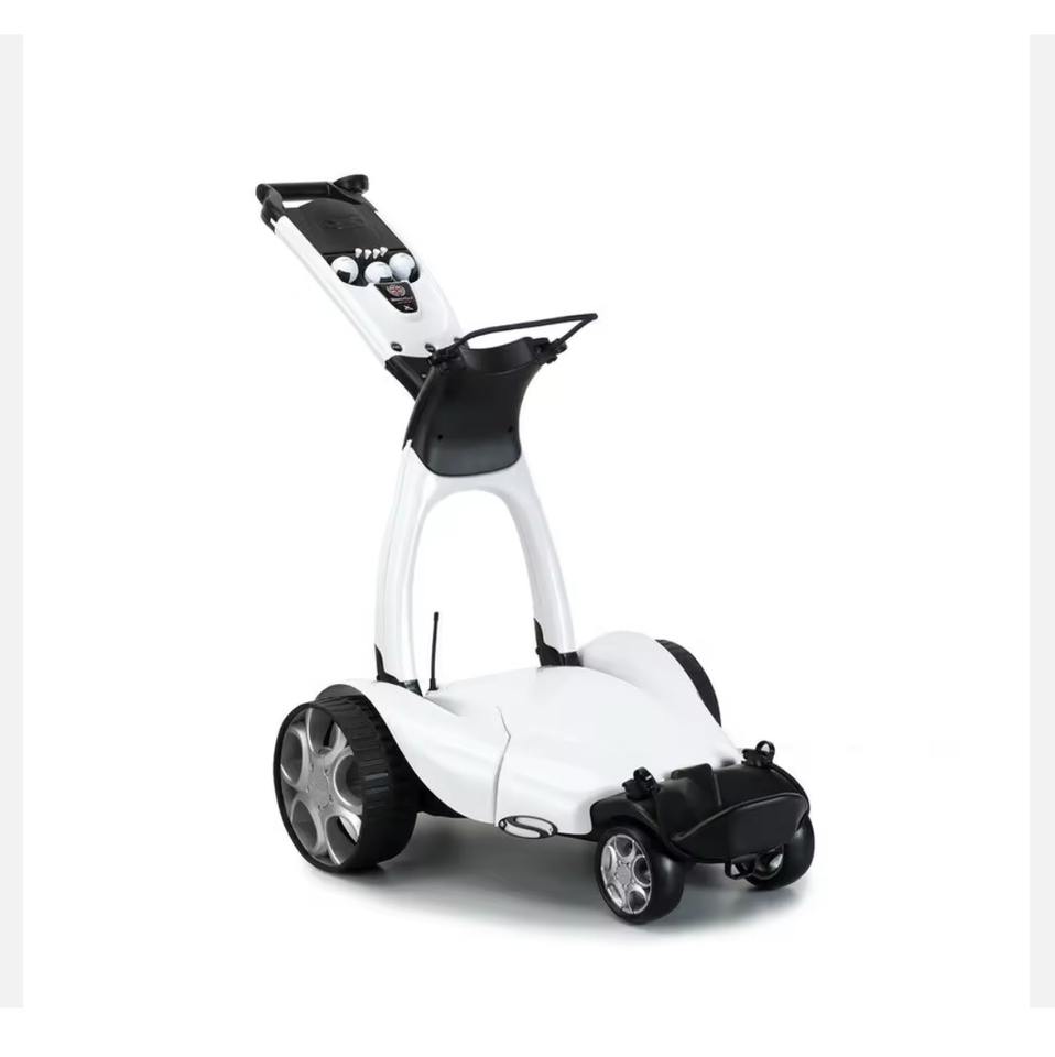 Chariot de golf électrique pliable à trois roues, plateforme en acier inoxydable, design réglable, noir métallisé, capacité de charge de 150 kg, prêt à l'emploi