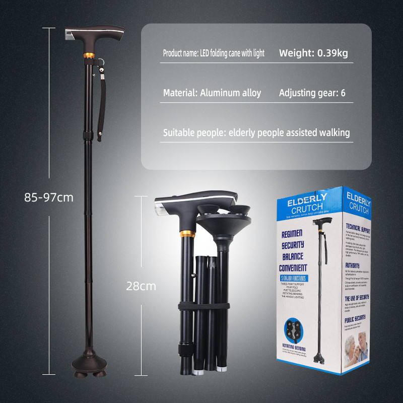 Bâton de canne pliable avec lumière LED Balance et bâton de soutien