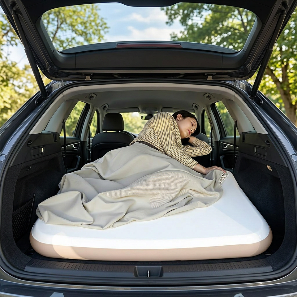 Matelas de voiture gonflable blanc pliable, lit de couchage en PVC écologique pour le camping en plein air, les pique-niques et les voyageurs