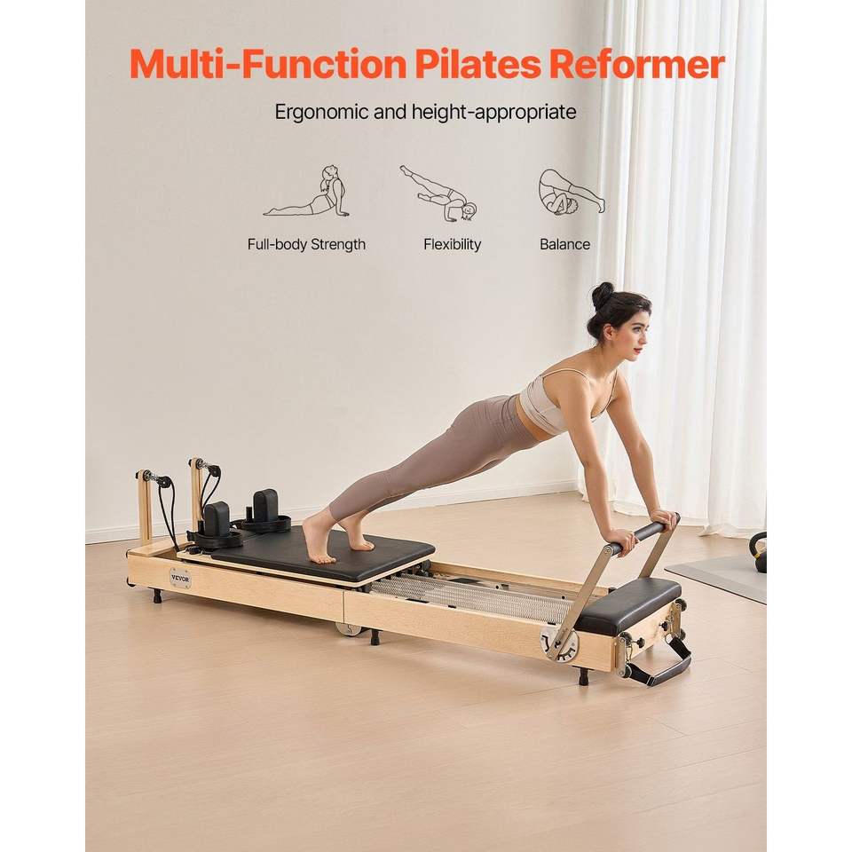 Machine de Pilates pliable en bois avec double résistance à ressort, lit de Pilates pour la maison, la salle de sport et le studio, Reformer de Pilates Premium