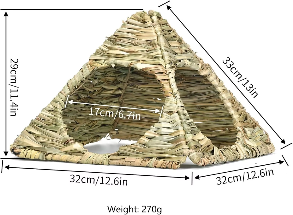 Nichoir pliable en herbe tressée pour lapin, abri triangulaire pour petits animaux, jouet à mâcher, tapis à foin, lit pour lapin, cochon d'Inde, hamster, cage