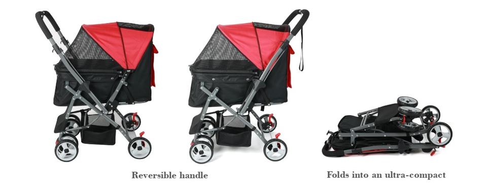 Poussette pour animaux de compagnie pliable avec grand espace, fenêtre transparente, cadre en aluminium à quatre roues, roues en EVA avec suspension, poussette légère pour chien