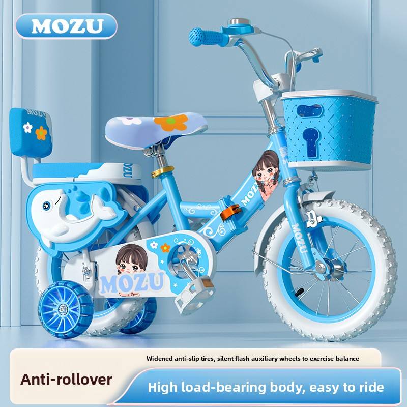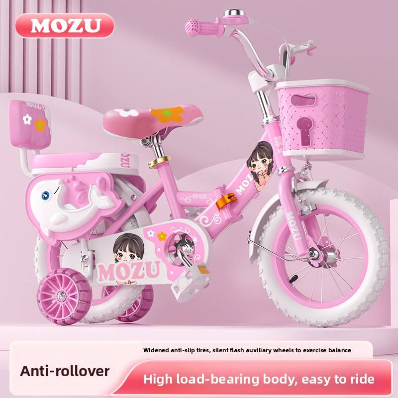 Vélo pliable pour enfants de 12 pouces avec roues d'apprentissage et panier, adapté aux enfants de 3 à 6 ans