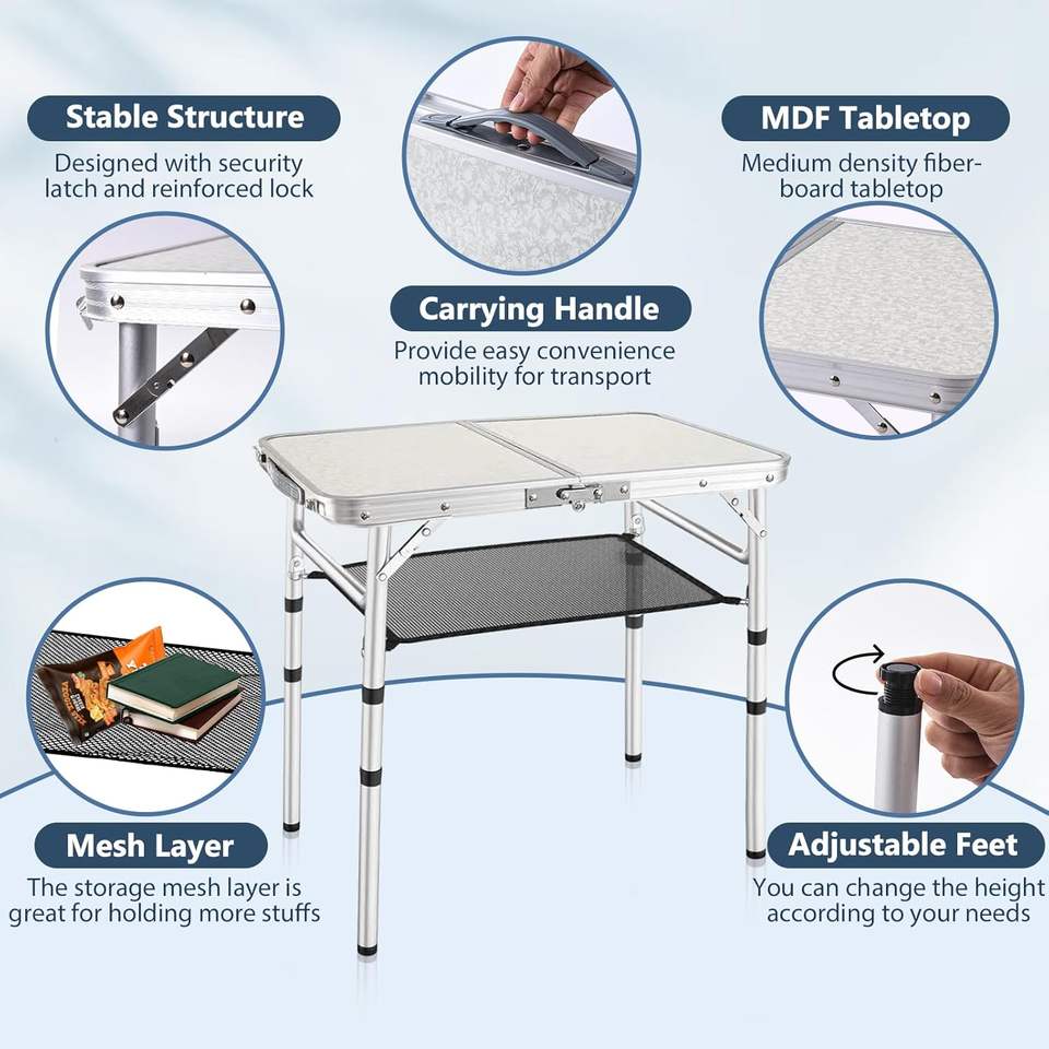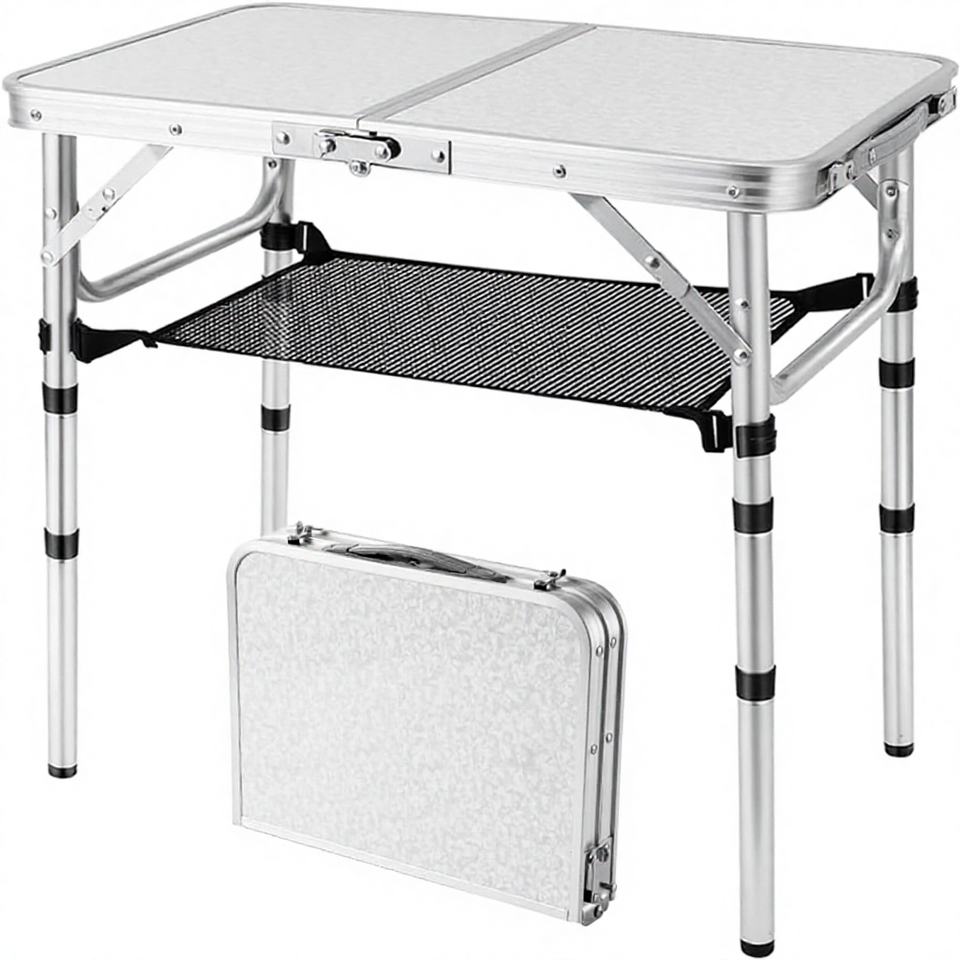 Table de pique-nique pliante, petite table de camping et de plage, hauteur réglable, portable, légère, en aluminium, table d'appoint rectangulaire, bureau