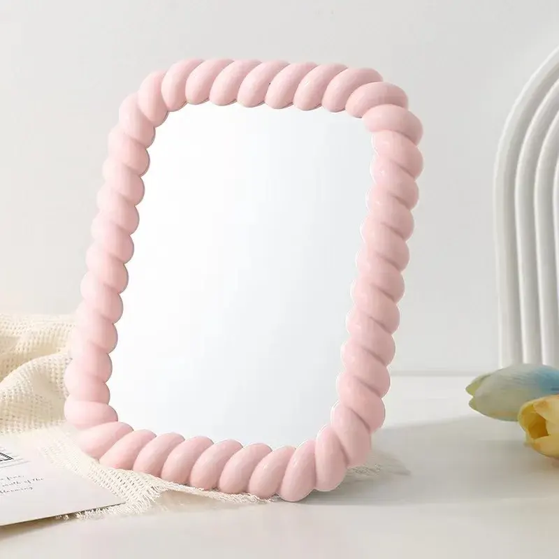 Miroir d'habillage circulaire carré de couleur crème en plastique pliable Miroir réglable pour miroir de maquillage de bureau personnel