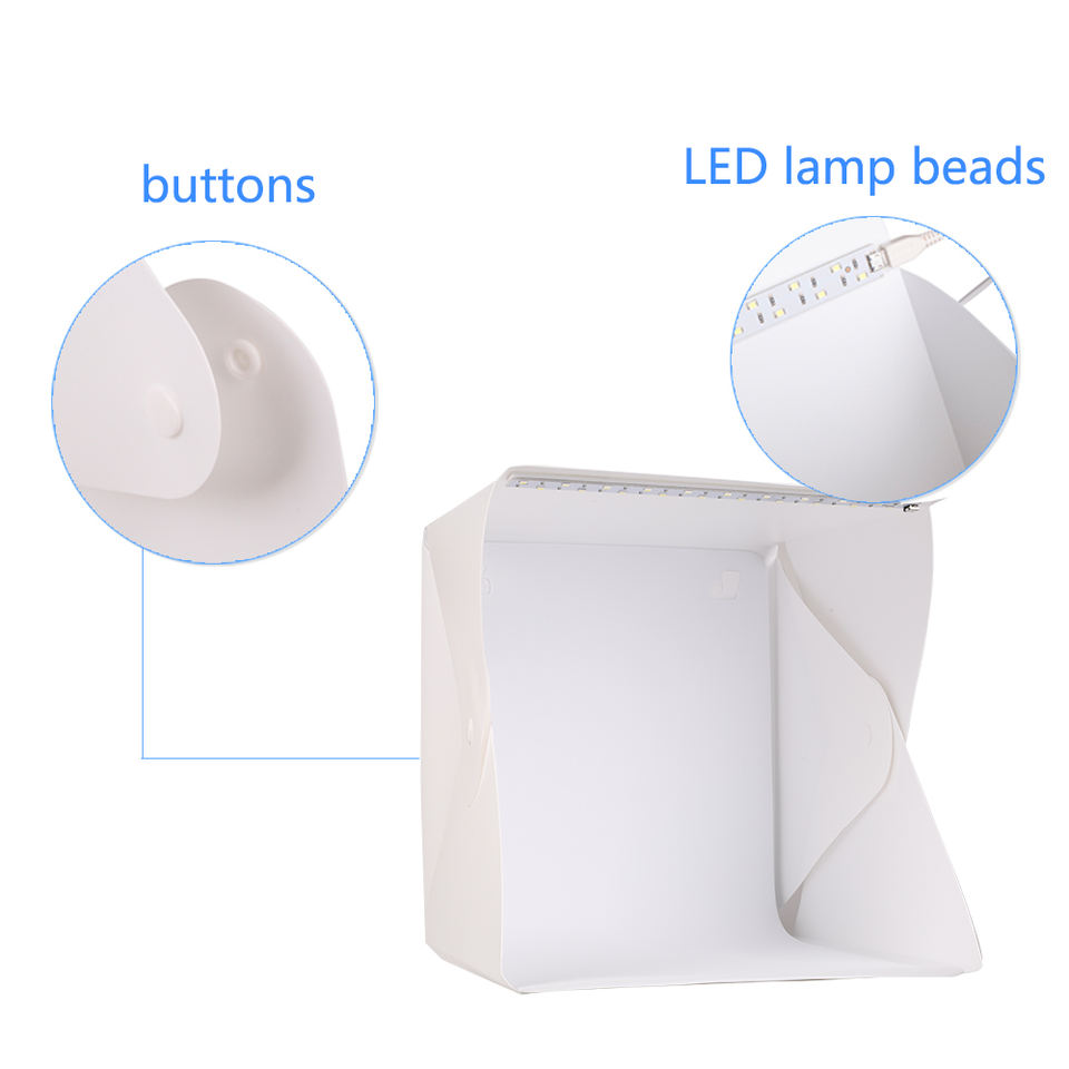 Mini studio photo pliable portable de 40 cm avec éclairage LED USB, boîte à lumière douce, tente de studio photo avec fonds noir et blanc