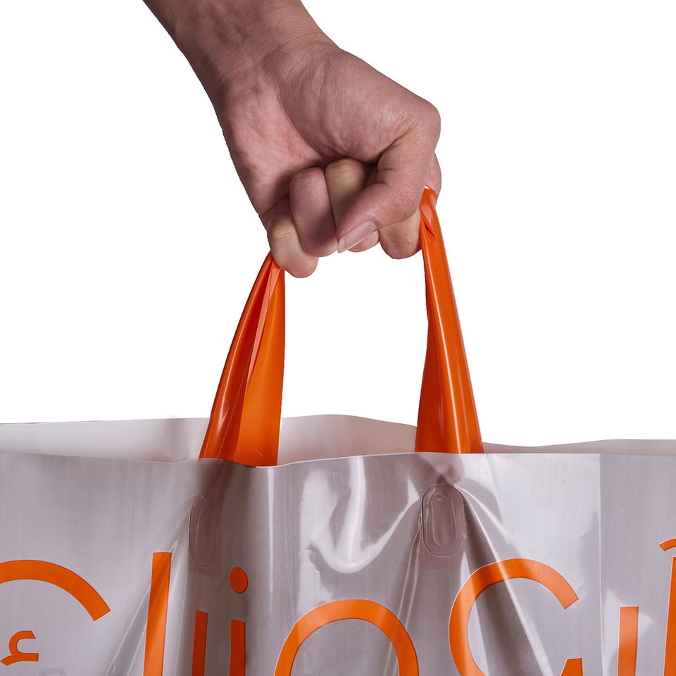 Sac de courses en plastique pliable et recyclable, sac fourre-tout réutilisable, Flexiloop, logo personnalisable, emballage boutique, estampage à chaud, valve
