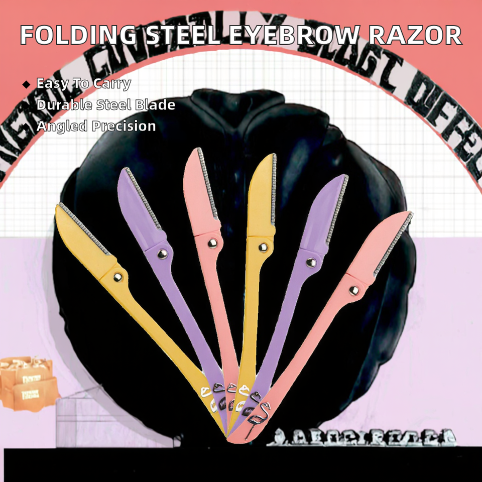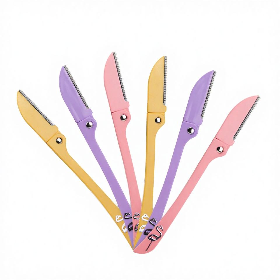 Rasoir à sourcils pliable en acier inoxydable, pointe inclinée, tondeuse à poils du visage compacte et portable, logo personnalisé disponible, OEM/ODM disponible XR