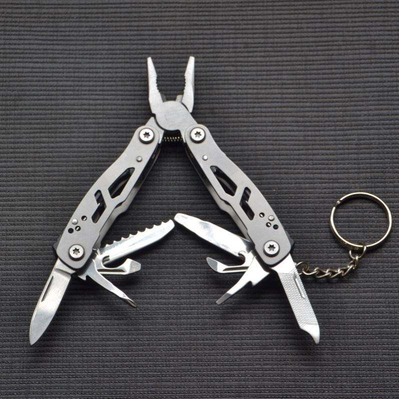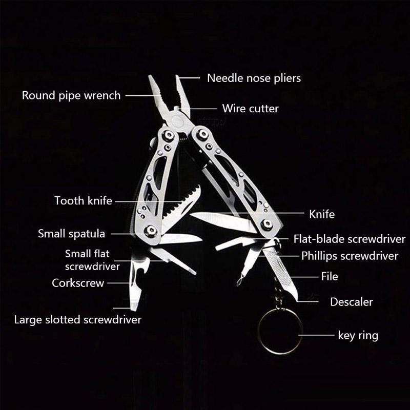 Outil multifonction pliable en acier inoxydable, porte-clés mini, couteau pliant portable, pinces, tournevis, porte-clés EDS, ensemble d'outils de survie en plein air