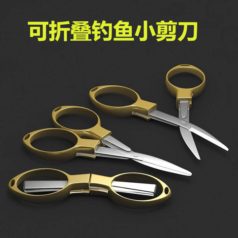 Ciseaux pliants en acier inoxydable jaunes, coupe-ligne de pêche multifonctionnel pour enfants, pour l'extérieur