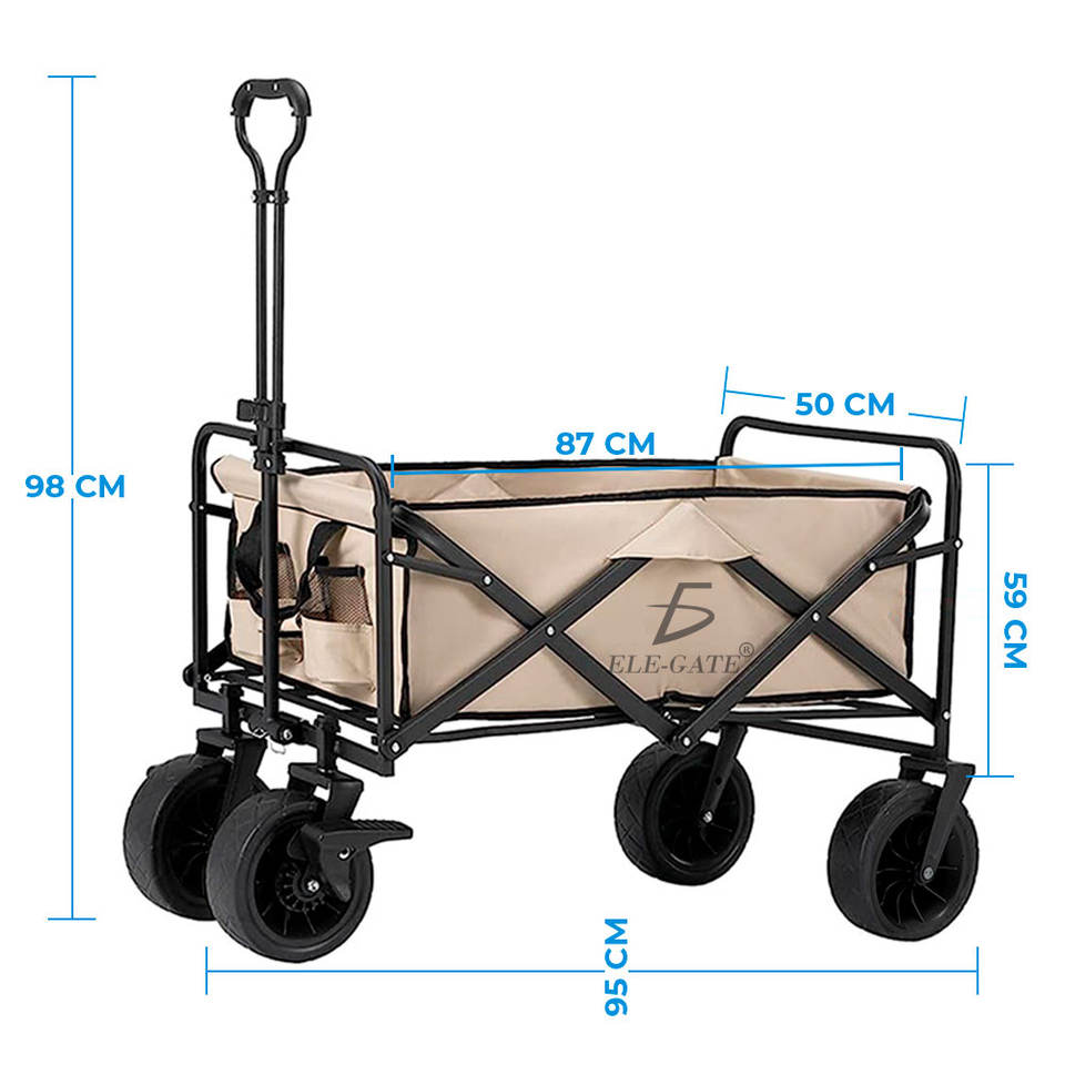 Chariot à plateforme pliable en acier avec roues en PU de 5 pouces, chariot utilitaire durable pour activités extérieures polyvalentes