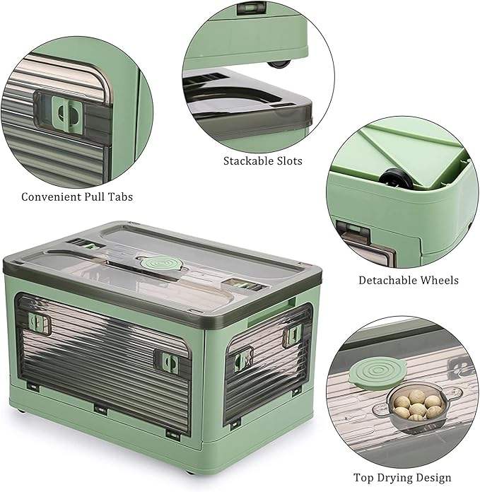 Bacs de rangement pliables en plastique avec roulettes, quatre portes, empilables pour l'organisation, chariot de rangement
