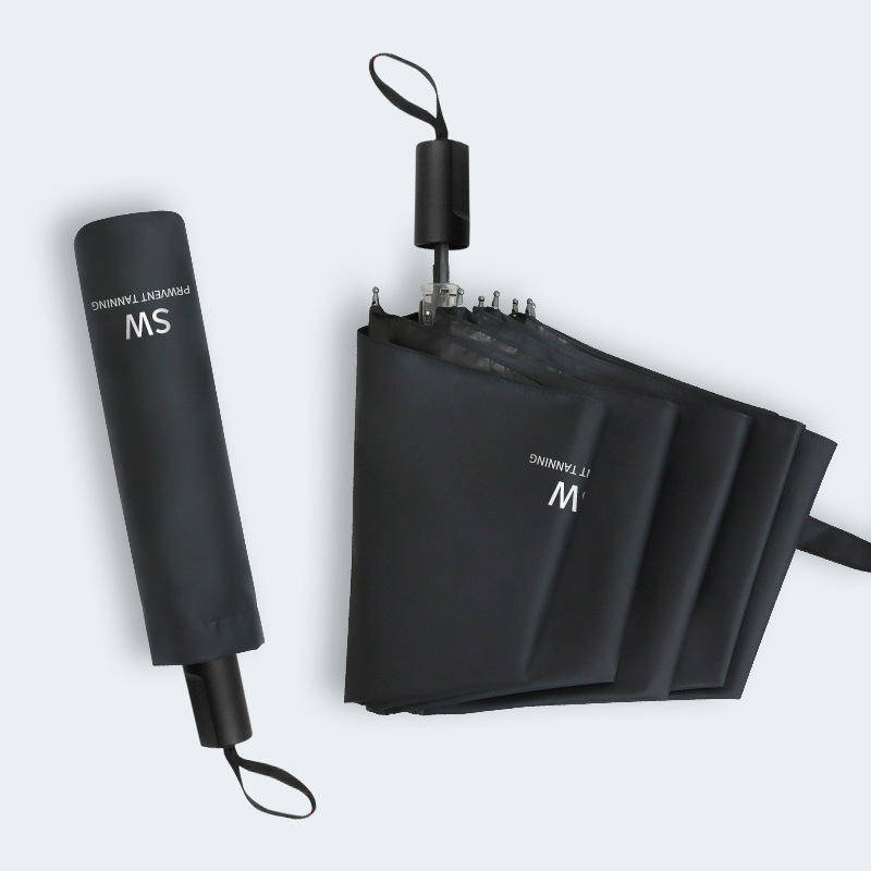 Parasol pliable anti-UV pour homme et femme, double usage soleil/pluie, noir, en caoutchouc, pliable, portable, imperméable