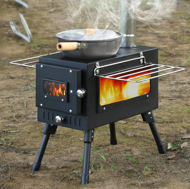 Folding Manual Ultra Light Outdoor Hiking Picnic BBQ Wood Multi-function Wood Burning Steel Camping Tent Stove