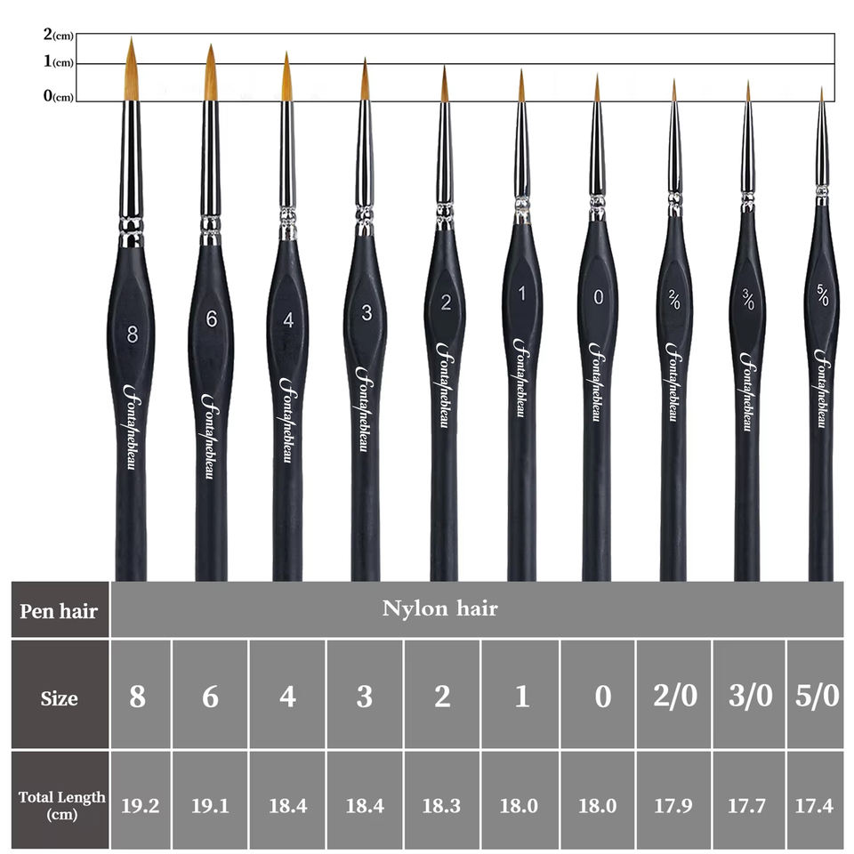 Fontainebleau 10 pièces/ensemble Pinceaux d'art en nylon triangulaires pour artistes, détails fins, miniatures, pour la peinture artistique
