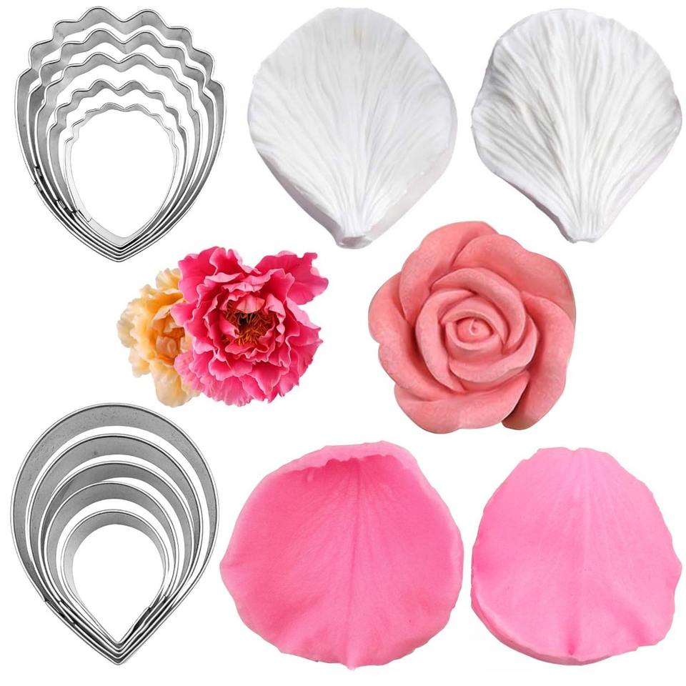 Moule à pâtisserie en sucre de qualité alimentaire, 7 pièces, pour biscuits, gâteaux, rose et pivoine, pour la décoration de gâteaux, outils de pâtisserie