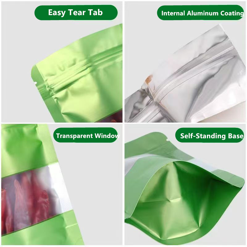 Sacs à fenêtre en composite de qualité alimentaire, étanches aux odeurs, pour aliments pour animaux de compagnie, aliments pour bébés, épices, assaisonnements, emballage avec fermeture éclair, thermoscellage