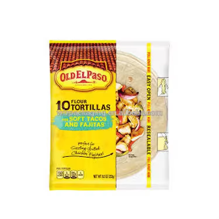 Sac d'emballage alimentaire personnalisé refermable à fermeture éclair pour tortillas de farine avec encoche de déchirement