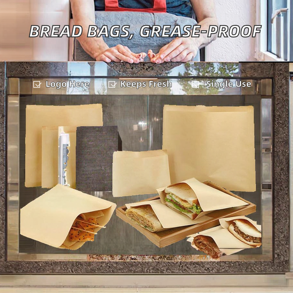 Sacs à collation jetables en papier kraft de qualité alimentaire, résistants à la graisse, pour pain, gâteaux, salades, avec impression offset et logo personnalisé
