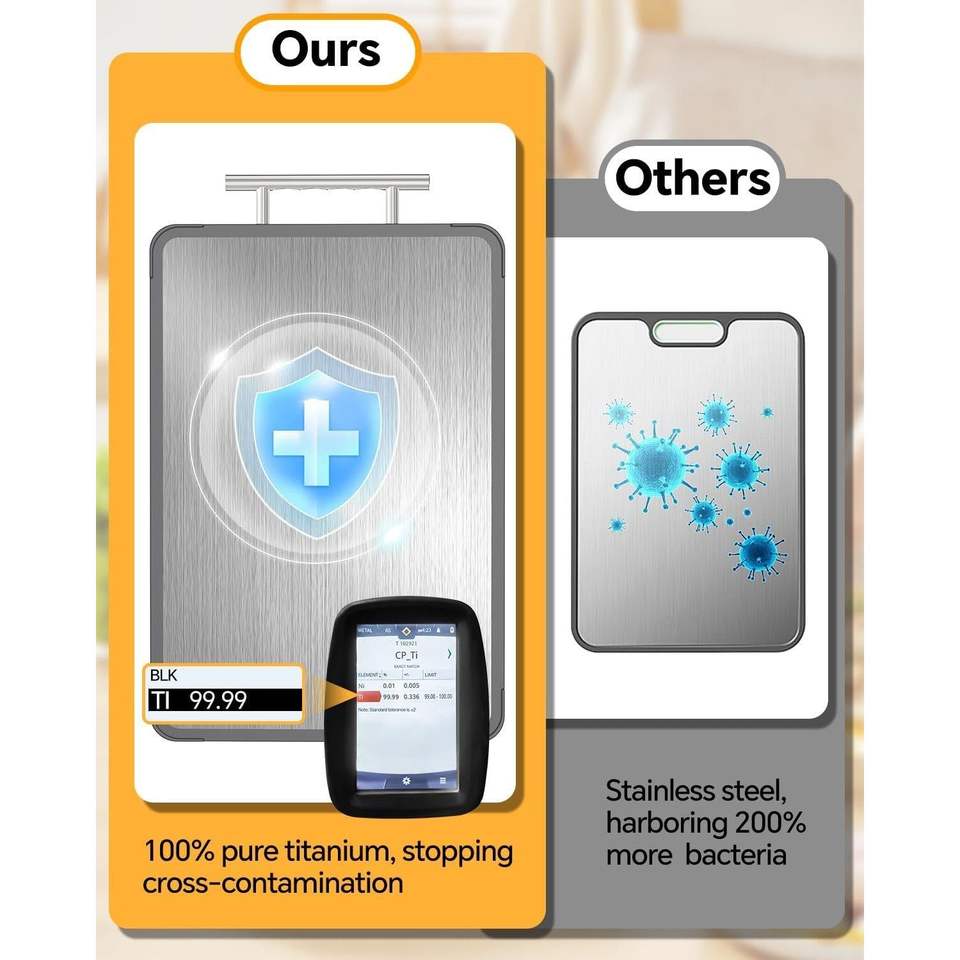 Planche à découper en bambou et titane pur double face de qualité alimentaire, antidérapante, non toxique, avec poignée confortable