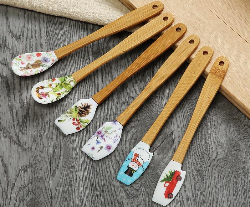 Spatule en silicone de qualité alimentaire, écologique, avec manche en bois, pour la cuisine, la préparation de crèmes et beurres, résistante à la chaleur, outil de pâtisserie, cadeau pour chef, bol