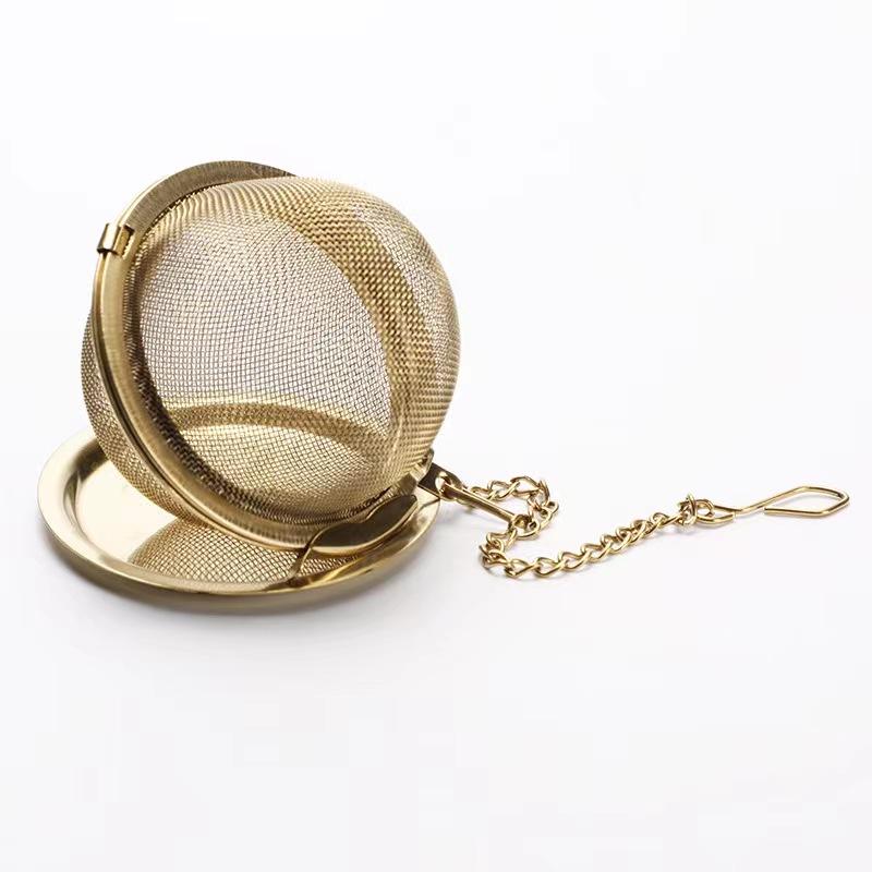 Boule de thé en acier inoxydable 201 304 or et argent de qualité alimentaire, boule d'assaisonnement, infuseur de thé avec chaîne