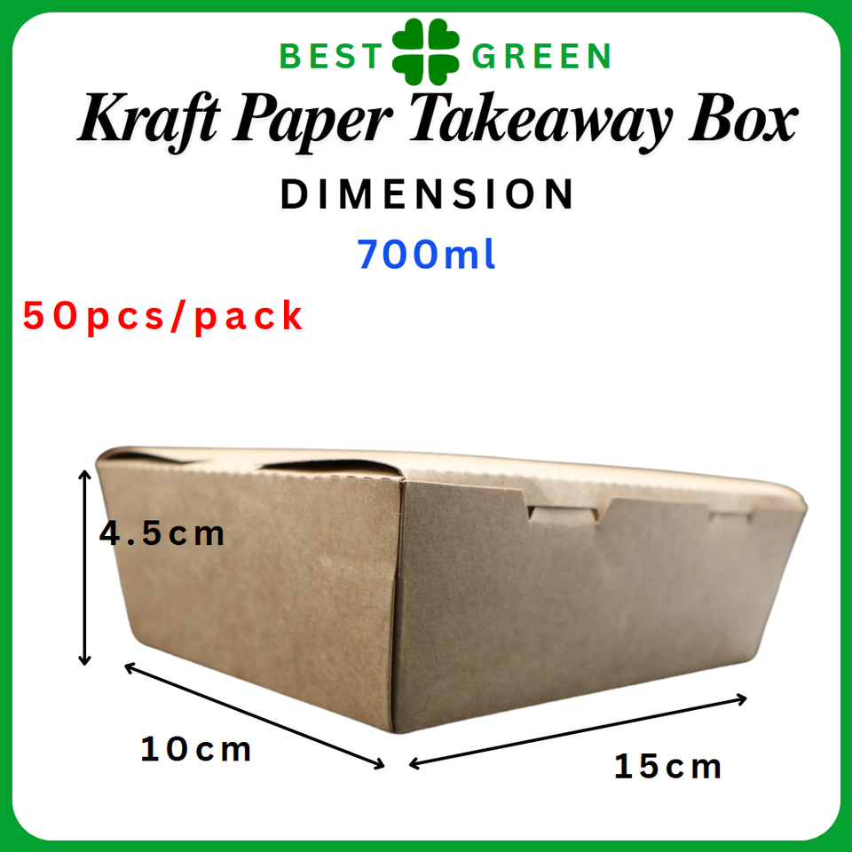 Boîte à lunch en papier kraft de qualité alimentaire | 500ml, 700ml, 1200ml, 2100ml | Personnalisable | Graissable | Étanche | Passe au micro-ondes