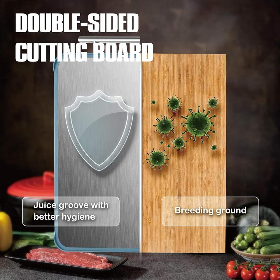 Nom du produit:Planche à découper 2 en 1 PP/SS 304 avec poignée