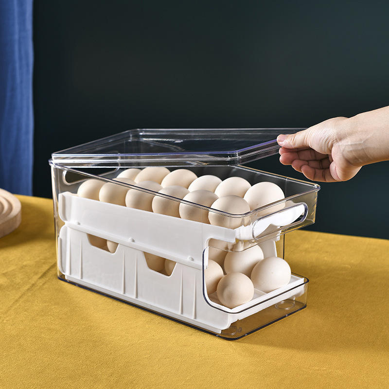 Boîte de rangement pour œufs en PET de qualité alimentaire, type coulissant, avec repositionnement automatique, empilable, 2 en 1, organisateur de réfrigérateur, conteneur pour la fraîcheur