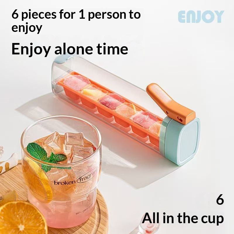 Food-Grade PP Plastic One-Handed Press 6-Grid Ice Cube Tray with Lid Push-Button Ice Maker Kitchen Tool for Freezer Beverages