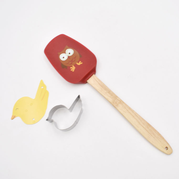 Ensemble d'ustensiles de cuisson en silicone de qualité alimentaire, moule à biscuits en forme de canard en acier inoxydable avec spatule en silicone à motif hibou, adapté à la pâtisserie en cuisine