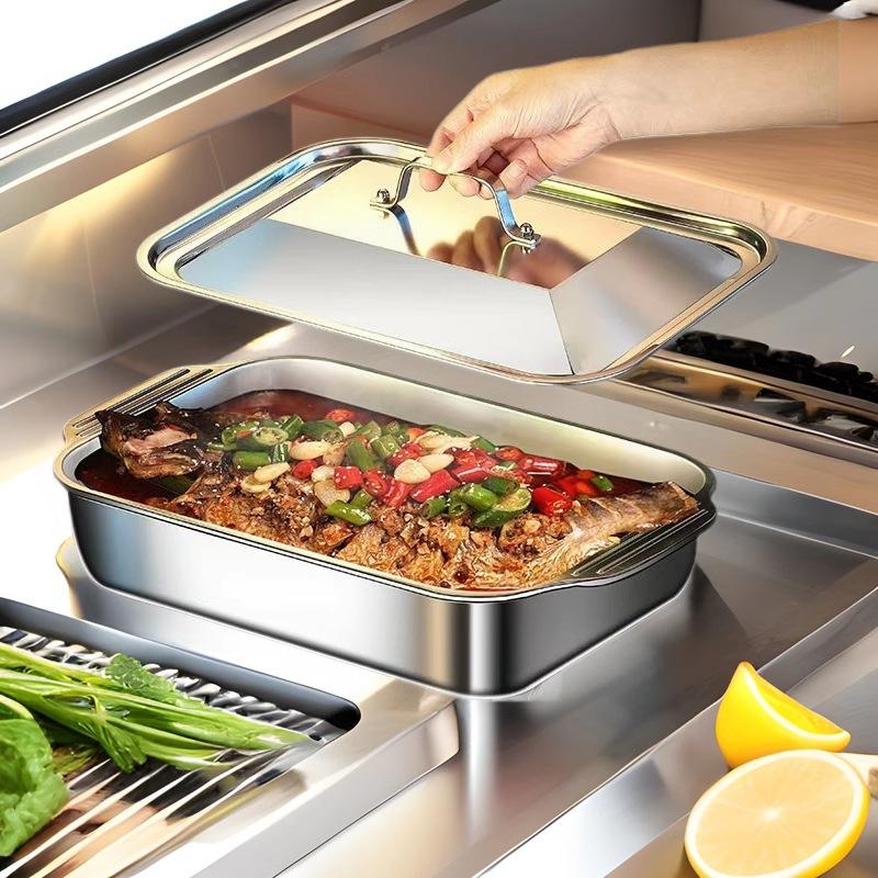 Plateau carré en acier inoxydable de qualité alimentaire pour poisson grillé pour barbecue pique-nique camping marmite et fruits de mer accessoire de vaisselle