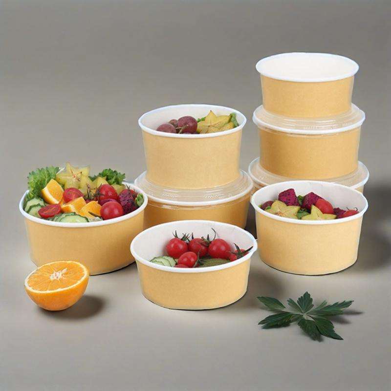 Bol en papier enduit PE imperméable de qualité alimentaire à prix d'usine de qualité alimentaire pour salade à emporter Saladier en papier kraft avec couvercle