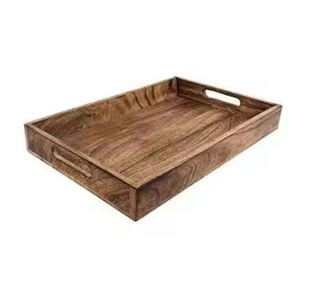 Plateau en forme de rectangle en bois de qualité alimentaire avec poignée Design moderne pour le service de boissons alimentaires fabriqué en Inde