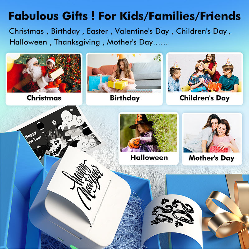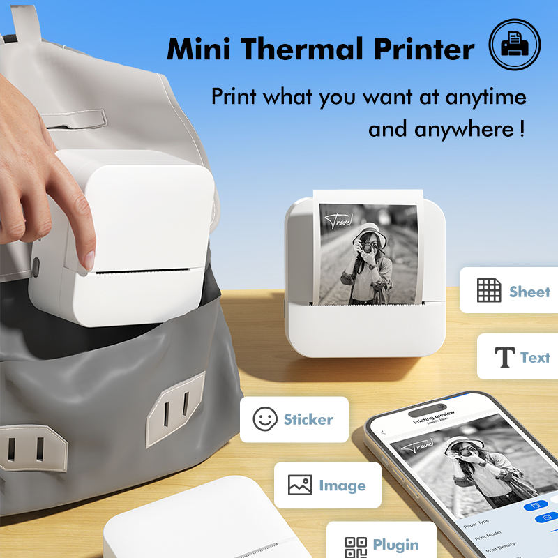 Imprimante d'étiquettes alimentaires sans fil, portable, rechargeable, imprimante thermique de codes-barres pour téléphone portable Android iPhone - Modèle D1