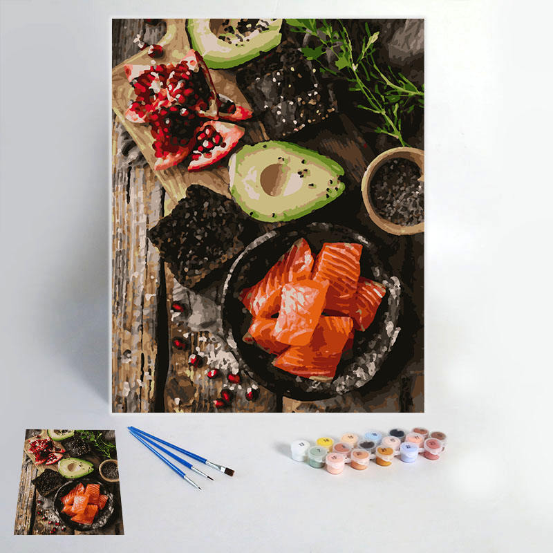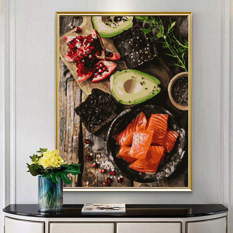 Nourriture photo peinture par numéros Kits délicieux saumon avocat mur Art numérique peinture à l'huile affiches pour la maison salle à manger