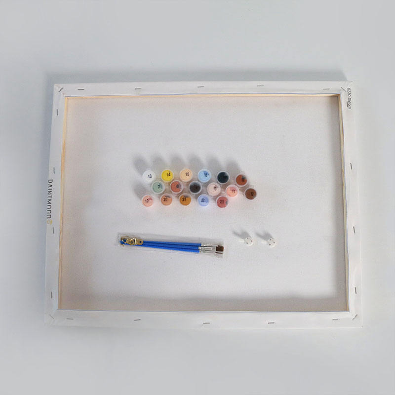 Composants:Toile + cadre intérieur + peinture acrylique + 3 pinceaux