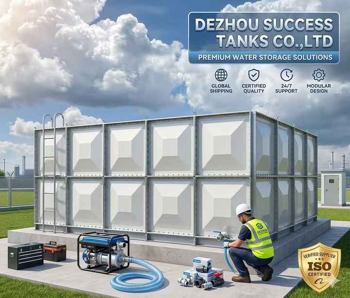 Réservoir d'eau d'irrigation agricole en panneaux de fibre GRP certifiés pour usage alimentaire | RO 1000L/H, 70KW, Garantie de qualité de 3 ans
