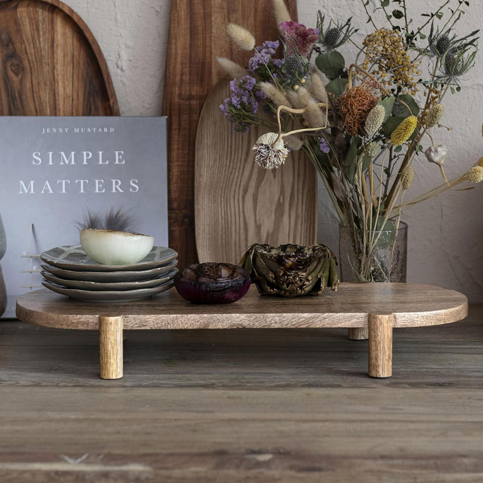 Plateau de service surélevé en bois mangue sans danger pour les antipasti, les tapas, les entrées et les desserts Socle en bois Plateau de service pour aliments