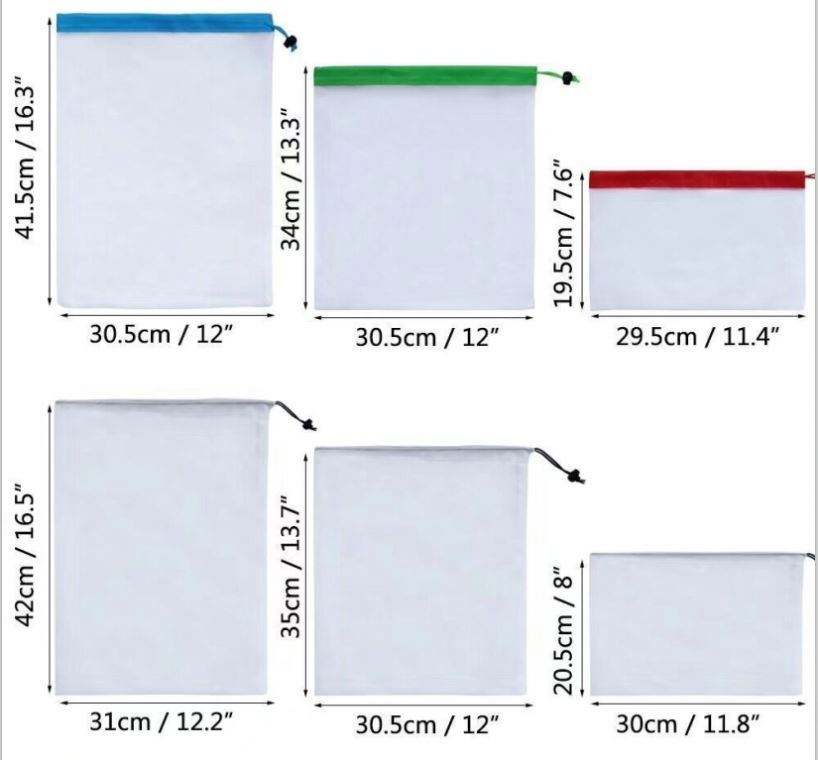 Ensemble de 9 sacs en coton à cordon de serrage, transparents, résistants et de qualité alimentaire, à motif rayé, petits, réutilisables, pour fruits, légumes, jouets et livres