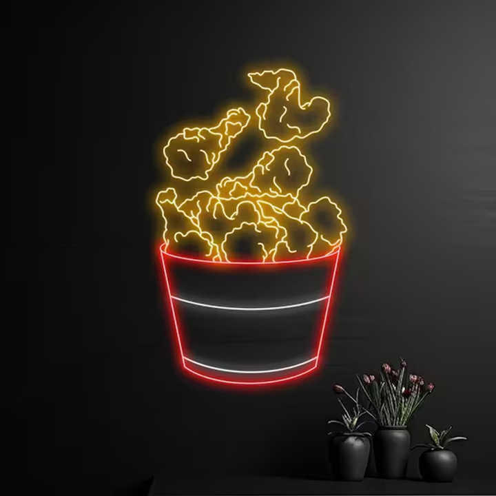 Magasin d'alimentation led enseigne au néon magasin entreprise logo poulet cuit enseigne au néon design UV impression magasin logo au néon lumière pour décoration murale
