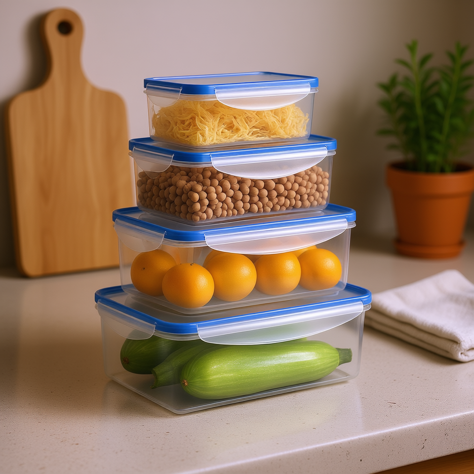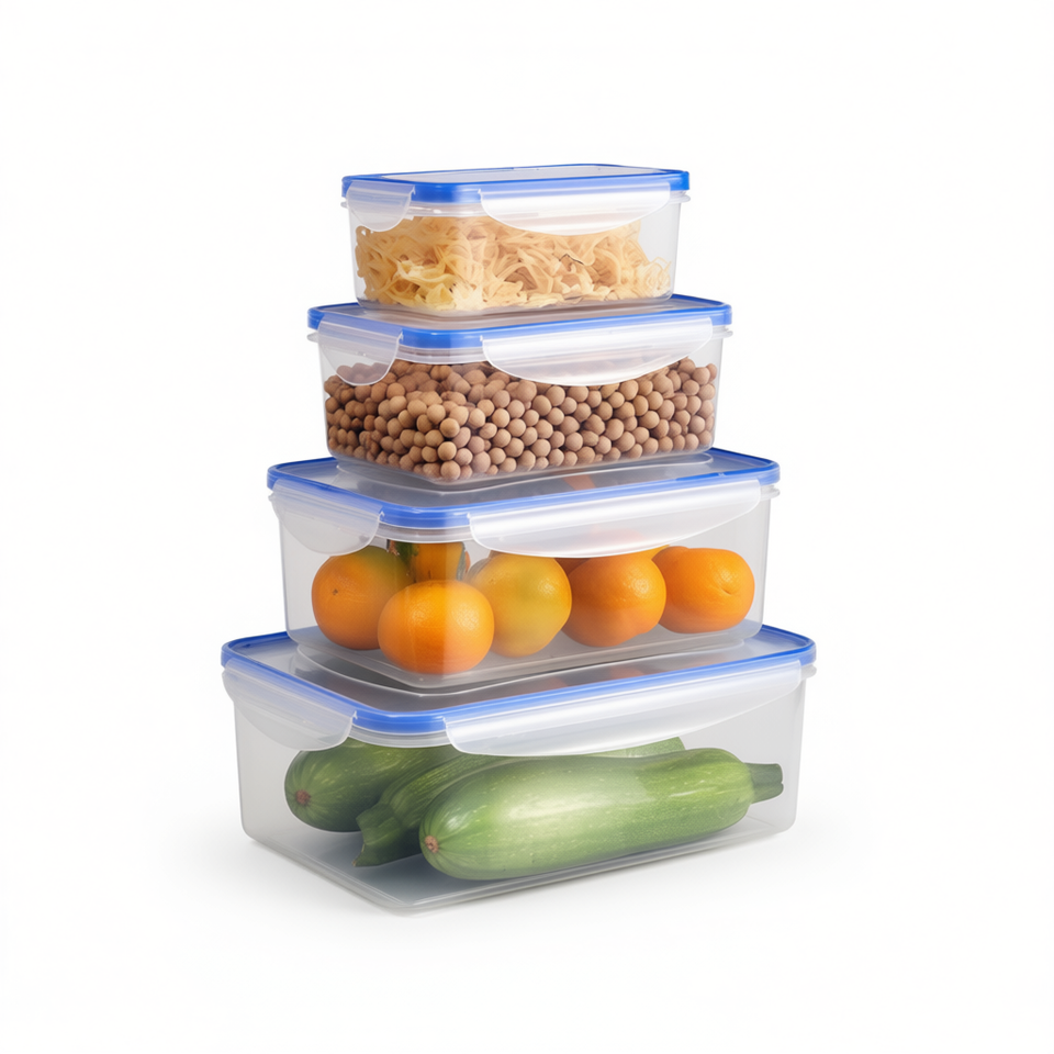 Ensemble de contenants de stockage alimentaire, 4 pièces, rectangulaires, en plastique durable, bacs d'organisation de cuisine pour produits frais et repas