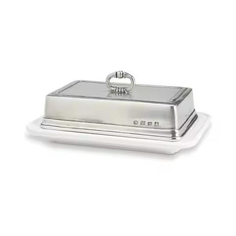 Beurrier en métal avec couvercle