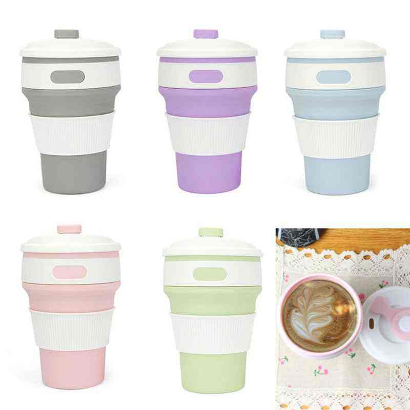 Gobelet à café pliable en silicone de qualité alimentaire, grande capacité, anti-fuite, design sportif portable