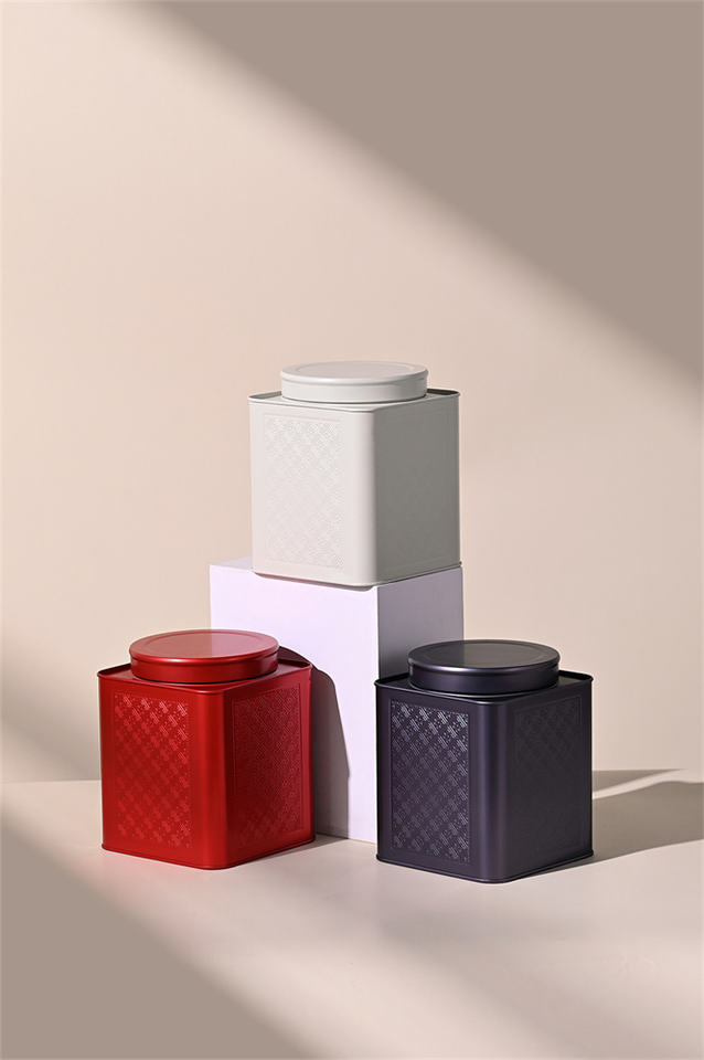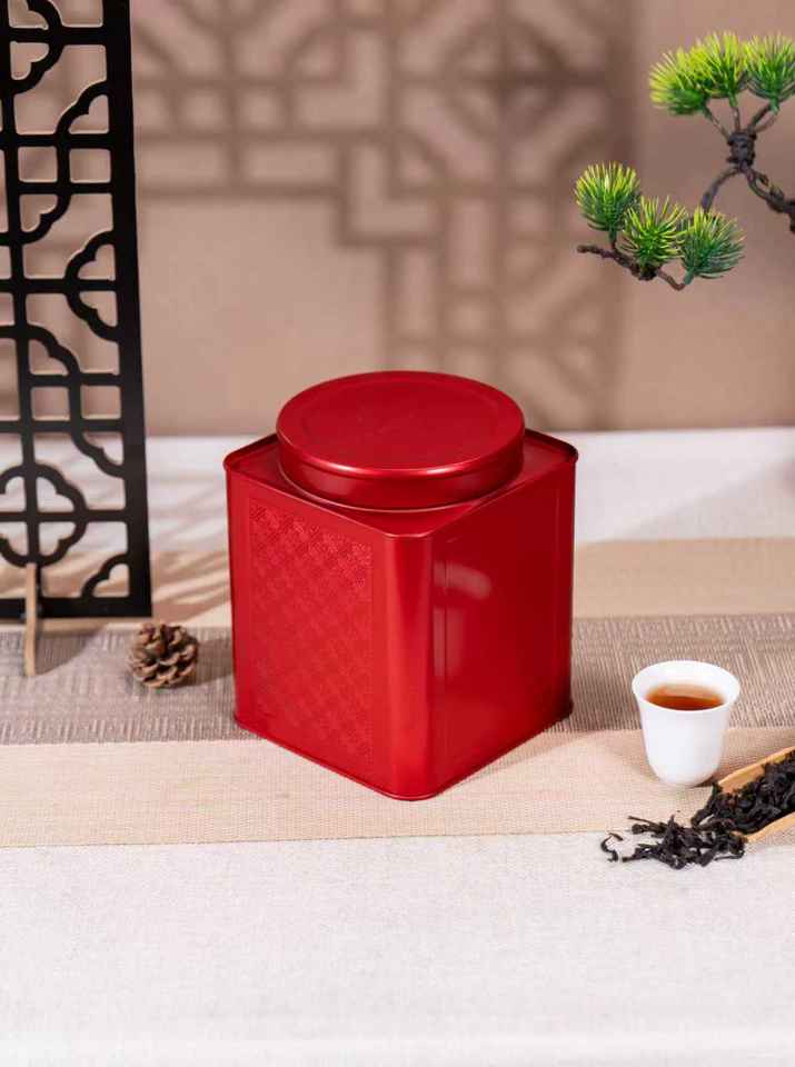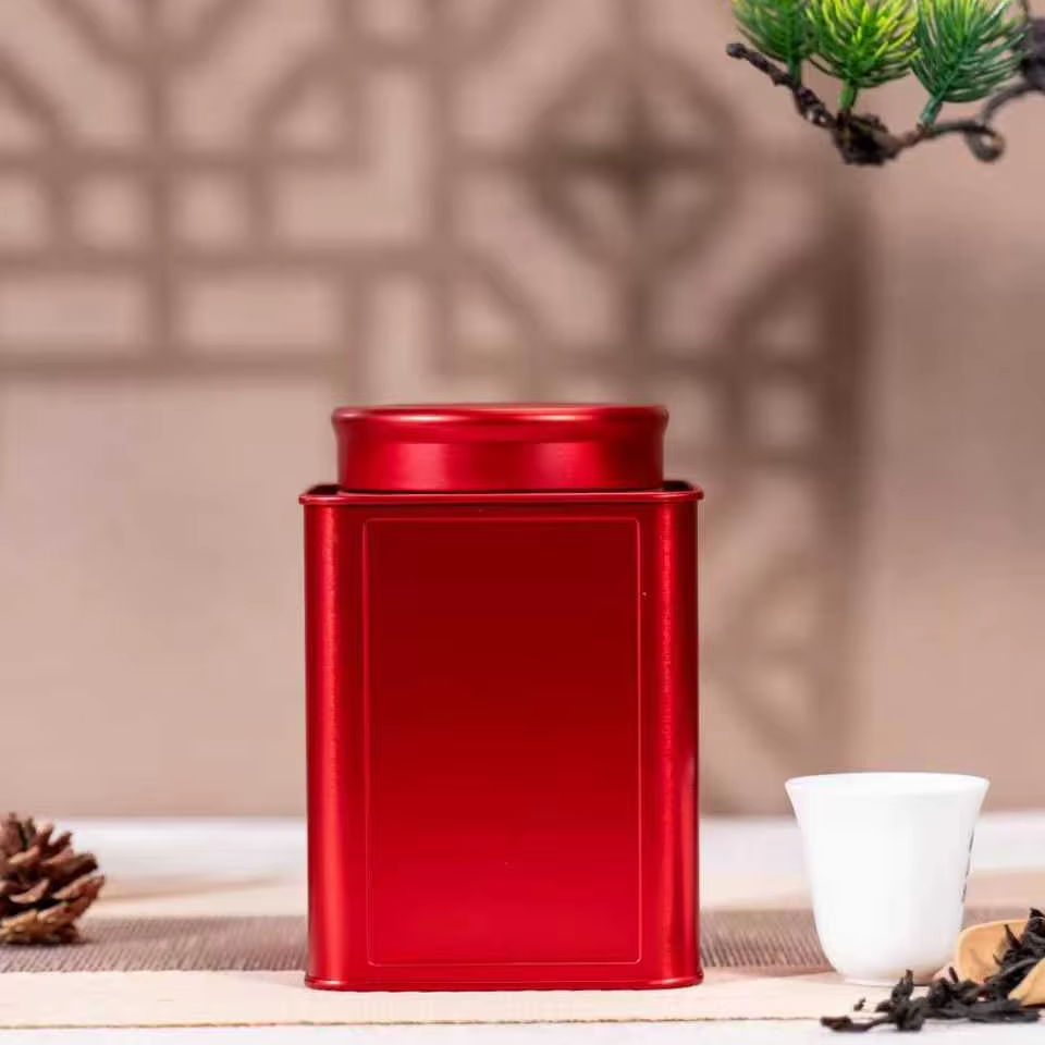 Boîtes en fer blanc soudées carrées rouges de qualité alimentaire (100x100x140mm) Bouchon à vis adapté aux grains de café, aux grains de cacao, aux haricots blancs