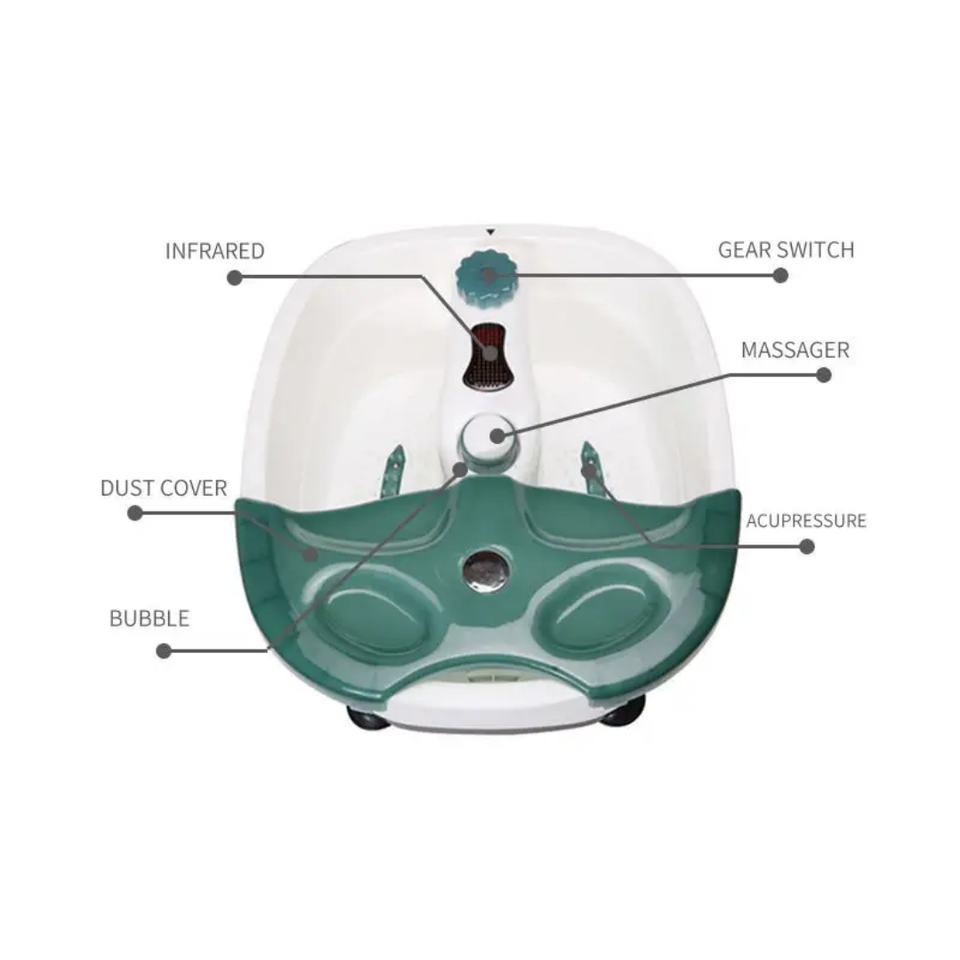 Baignoire pour les pieds avec bulles stimulantes, protection contre les éclaboussures, masseur de pieds chauffant à rouleaux, produits de massage pour les pieds