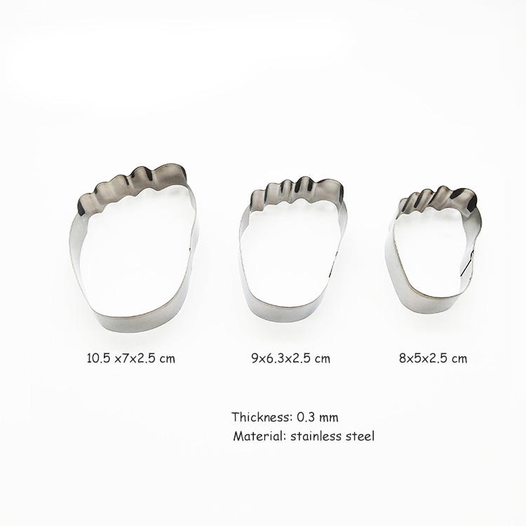 Ensemble de 3 emporte-pièces en acier inoxydable en forme de pied / 8/9/10 cm