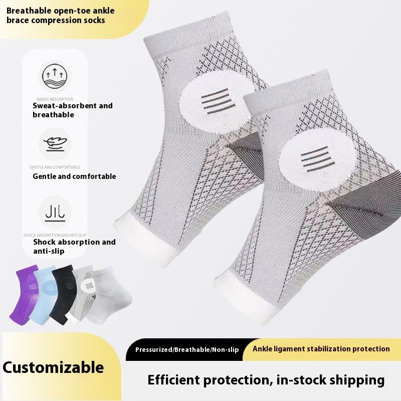 Chaussettes de compression sportives anti-transpiration à bout ouvert et entièrement couvrant le pied, protection anti-entorse, soutien de la voûte plantaire, chaussettes de maintien de la cheville